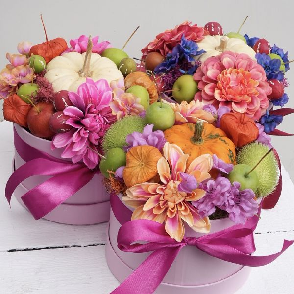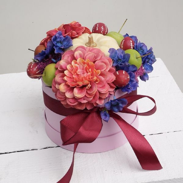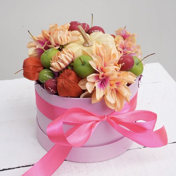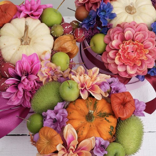 Gevuld met prachtige zijdebloemen, verse appeltjes en sfeervol herfstfruit in warme tinten - perfect om het seizoen in huis te halen. Elk detail ademt gezelligheid en herfstgevoel. De combinatie van natuurlijke elementen en rijke kleuren maakt deze box een echte blikvanger voor op tafel, in de keuken of als origineel cadeautje.